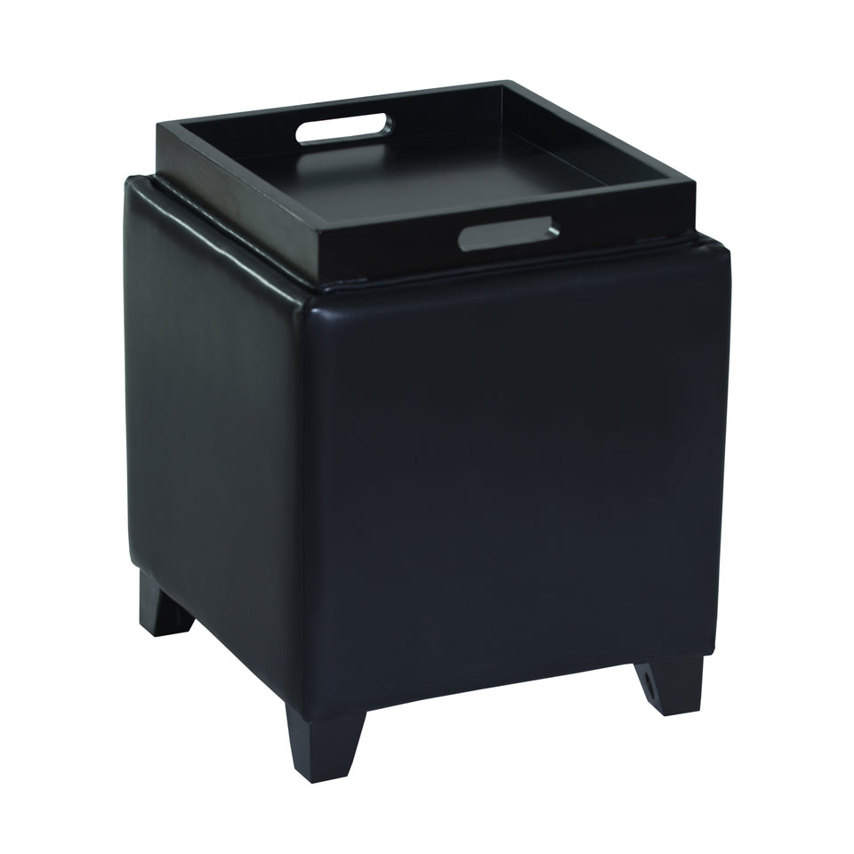 Rainbow Contemporary Storage Ottoman With Tray in Black Bonded Leather