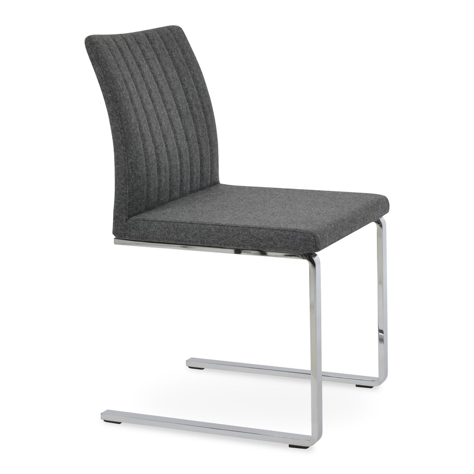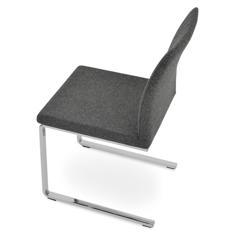 Zeyno Flat is a contemporary chair with a comfortable upholstered seat and backrest on a chrome solid steel sled base with embedded plastic gliders on the bottom. The seat has a steel structure with “S” shape springs for extra flexibility and strength. This steel frame is molded by an injecting polyurethane foam. Zeyno Flat seat is upholstered with a removable velcro enclosed fabric, leatherette, PPM, leather or wool fabric slip cover. Other colors are available as a special order with a minimum quantity required. The chair is suitable for both residential and commercial use. Zeyno Flat is designed by Tayfur Ozkaynak.